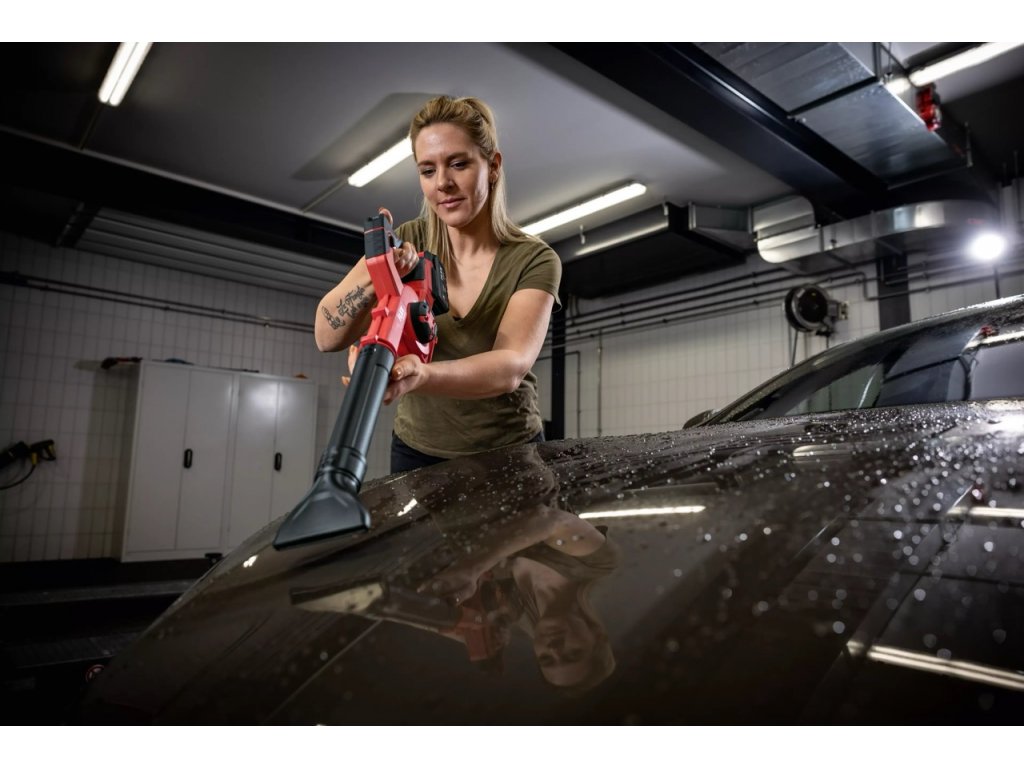 Flex AKU fukár na sušenie automobilov 18,0 V (bez batérie)Fukár Flex, ktorý môžete ľahko použiť na dosušenie škár pri umývaní na verejných vapkách. Kompaktný a ľahko manipulovateľný s ergonomicky tvarovaným soft-držadlom a prepínačom s aretáciou pre nepretržitú prevádzku. Malý, ale šikovný :)Dodávaný s plochou hubicou na odstránenie zvyškov vody z kapoty, strechy, okien atď. Trysku je možné otočiť o 360 ° pre horizontálne aj vertikálne použitie, takže super na kapotu a následne na bok dverí. Ďalej dodávaný so zúženou hubicou na vyfukovanie zo škár alebo z kolies. Odnímateľná trubica a tryska na uloženie šetriace miesto pri manipulácii alebo skladovaní. V domácnosti doceníte adaptér s vhodnými redukčnými tryskami na nafukovanie napr. vzduchových matracov. Mnohostranné využitie:Vďaka štyrom rôznym nástavcom je možné použiť pre rozličné aplikácie. Je tiež vhodný na rýchle a jednoduché odstránenie suchého opadaného lístia alebo čerstvo napadnutý sneh na aute. LED – ukazovateľ stavu kapacity akumulátora FLEX Aku-systém: prevádzka so všetkými FLEX 18,0 V akumulátormi. Dodanie bez aku a dobíjacieho zariadenia – nutné zaobstarať zvlášť. 2 Sacia hubica (plochá, zúžená) 1 Predlžovacia trubica 1 Nasávací filter Technické dáta: Napätie akumulátora 18,0 V Kapacita akumulátora 2,5 / 5,0 / 8,0 Ah Maximálny prietok ventilátora 3,11 m³/min Max. rýchlosť vzduchu 80 m/sec Rozmery d x š x v 740 x 80 x 235 mm Hmotnosť bez akumulátora 1,2 kg