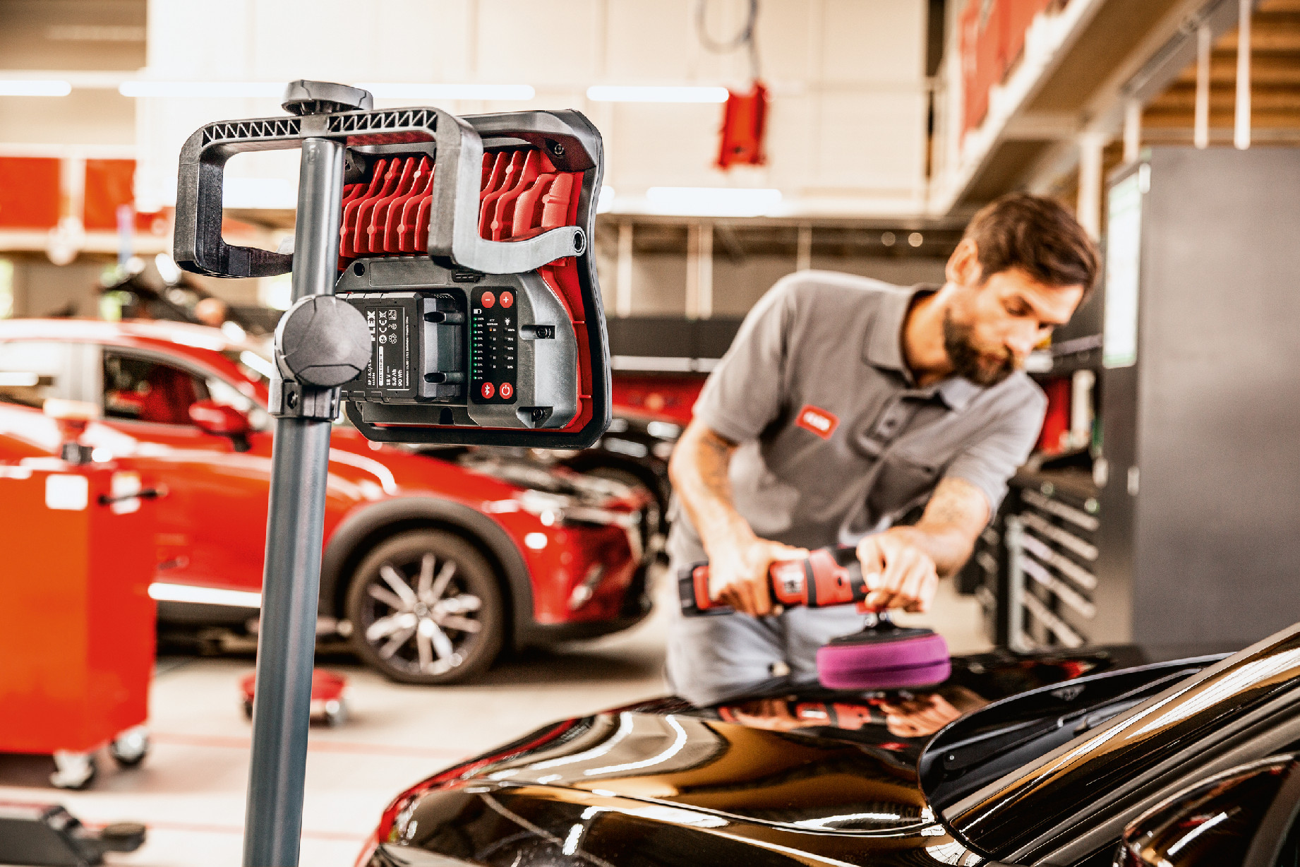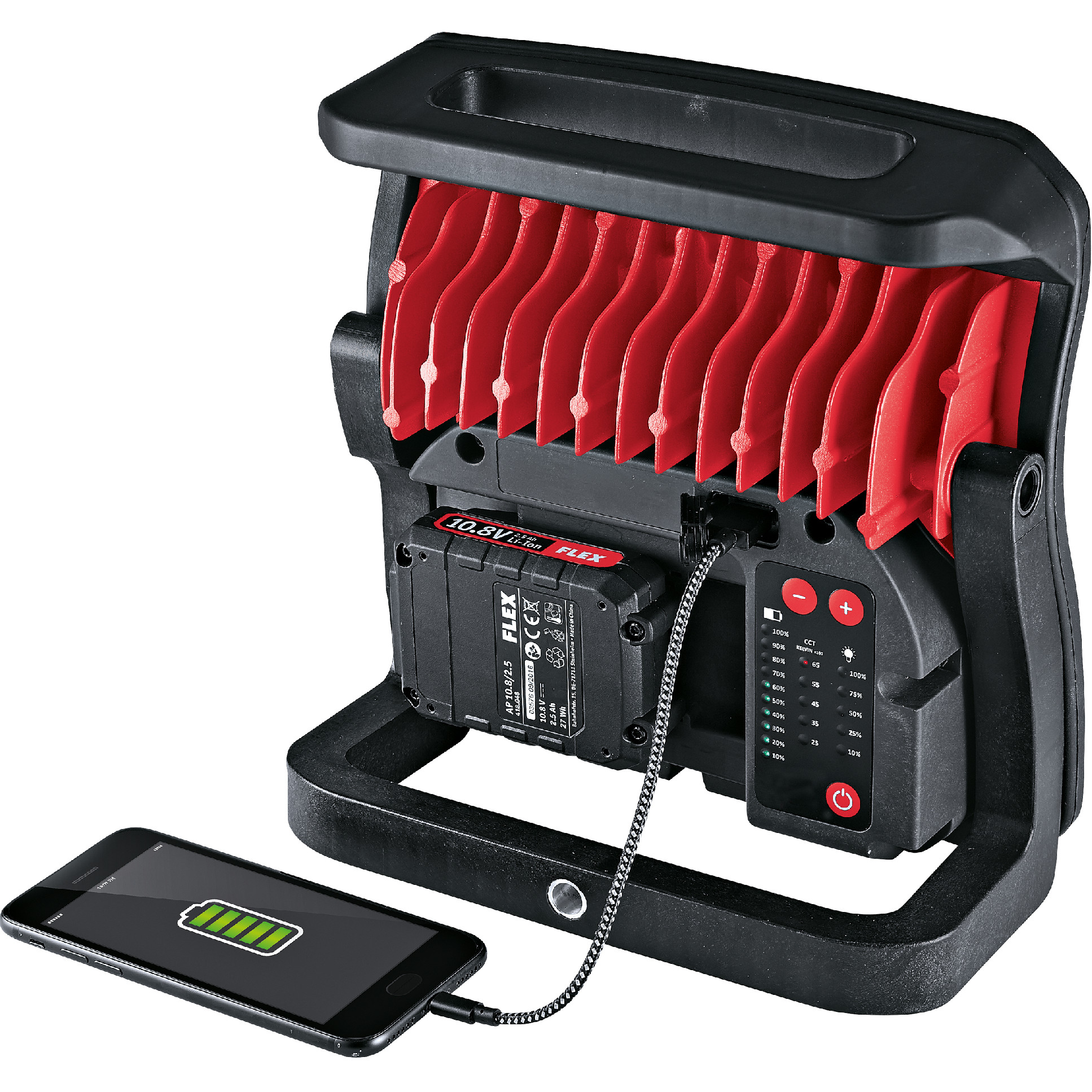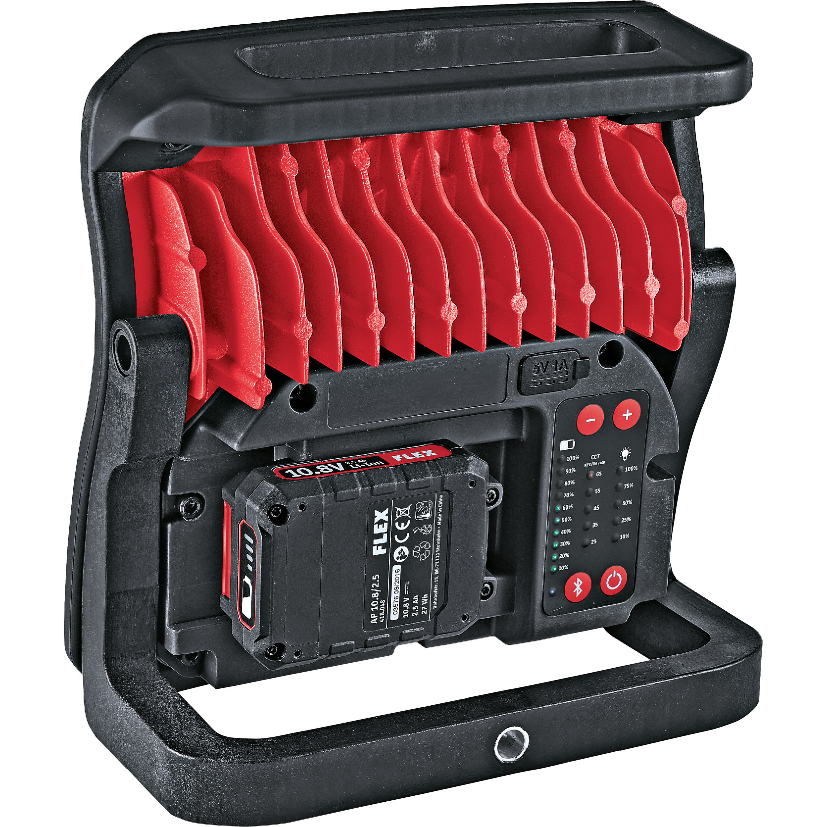 Výkonná LED celospektrálna lampa DWL 2500 zaujme najmä svojou extrémne dlhou dobou chodu až 30 hodín (300 lm) a veľmi vysokým svetelným výkonom max 3000 lúmenov.Štyri svetlá a nastavenie jasu v 5 rôznych úrovniach je možné ovládať pomocou aplikácie Bluetooth. Funkcia All Daylight ponúka možnosť zmeny teploty farieb v 5 krokoch od 2500 K do 6500 K. Rôzne teploty farieb je možné špecificky prispôsobiť pracovnej úlohe a pracovisku, čím umožňujú ideálnu kontrolu povrchu laku, určenie farby a detekciu defektov laku, hologramov a škrabancov. Veľmi vysoký index podania farieb CRI+ umožňuje presnú a spoľahlivú reprodukciu farieb, a preto je plnospektrálne svetlo obzvlášť vhodné na kontrolu laku počas leštenia alebo lakovania veľkých plôch.Integrovaná (plne nabitá) power banka dodáva lampe cca 2 hodiny elektriny, USB port ponúka možnosti nabíjania pre smartfóny a tablety. Nechýba ani pripojovací závit pre statívy a LED displej kapacity batérie. Robustné puzdro zaručuje dlhú životnosť, znesie najvyššie zaťaženie a je vodotesné a prachotesné.Zariadenie je kompatibilné so všetkými akumulátormi FLEX 10,8 V a 18,0 V. Maximálna svietivosť svietidla je zaručená len s 18,0 V akumulátormi. Svetlo je dodávané bez batérie a nabíjačky! Technické údaje:• Napätie batérie: 10,8 V / 18 V• Kapacita batérie: 2,5 Ah / 4,0 Ah / 5,0 Ah• Svetelný tok: 300-2250 lm (10,8 V) / 300-3000 lm ( 18 V)• Teplota farby: 2500 – 6500 CCT• Index podania farieb: RA ≥ 96 CRI• Trieda ochrany (s batériou): IP 20• Rozmery (D x Š x V): 240 x 230 x 104 mm• Hmotnosť bez batérie: 1,9 kg