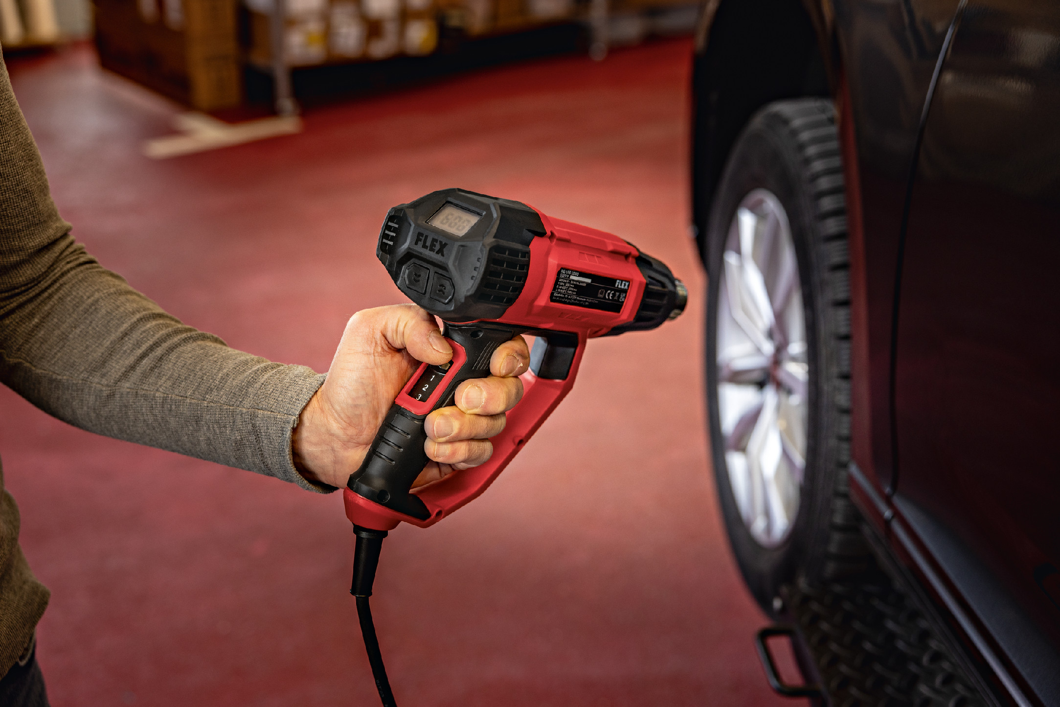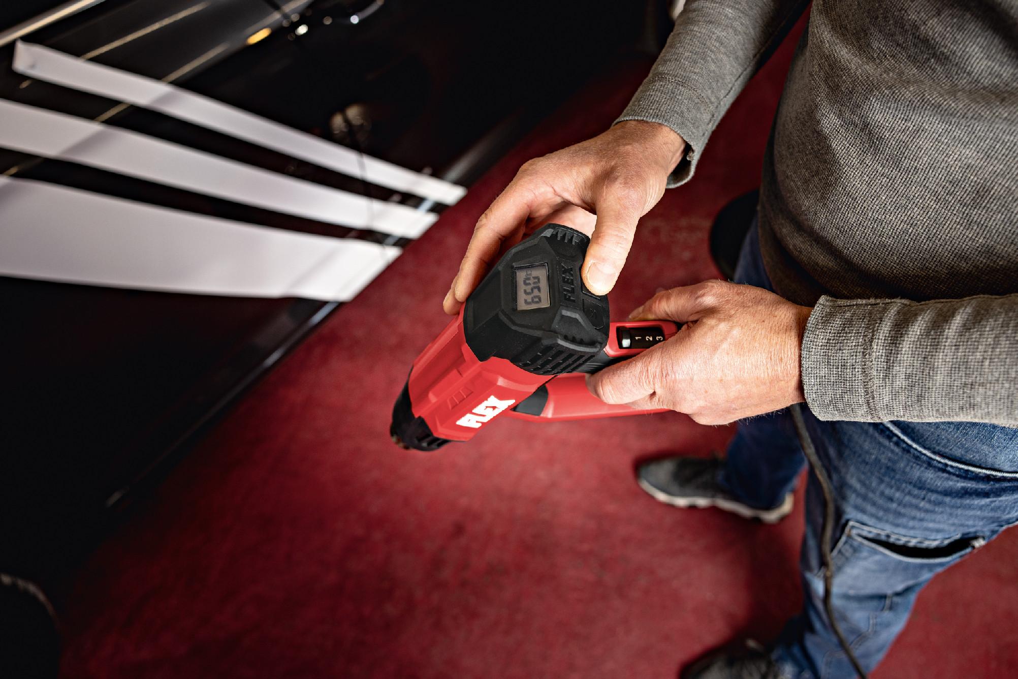 Teplovzdušná pištoľ FLEX HG 650 2000 je výkonný a presný nástroj určený pre široké spektrum aplikácií. Či už ide o tvrdnutie a sušenie, odstraňovanie farby a náterov, zmršťovanie plastových dielov a zmršťovacích hadičiek alebo spájkovanie elektrických spojov – táto teplovzdušná pištoľ vždy poskytuje spoľahlivé a presné výsledky. Vďaka kompaktnému a ergonomickému dizajnu sedí pohodlne v ruke a umožňuje jednoduchú manipuláciu aj pri dlhšom používaní. Teplovzdušná pištoľ FLEX HG 650 2000 sa s plynulou reguláciou teploty od 50 °C do 650 °C a dvomi nastaveniami prietoku vzduchu optimálne prispôsobí každej požiadavke. Efektívne výhrevné telesá sa postarajú o nahriatie v priebehu niekoľkých sekúnd, takže môžete bez meškania začať pracovať. Integrovaný LCD displej umožňuje jednoduchú a presnú kontrolu nad nastavením teploty a prúdenia vzduchu, čo vám poskytuje dodatočnú bezpečnosť a flexibilitu pri používaní. Toto zariadenie je ideálne pre špeciálne aplikácie, ako je odstraňovanie farieb a zvyškov lepidla, balenie automobilov a autodielov, bodové opravy plachiet nákladných vozidiel a uvoľňovanie zhrdzavených a zaseknutých spojov. Integrovaná ochranná rukoväť tiež zaisťuje optimálnu ochranu užívateľa, aby ste mohli pracovať vždy bezpečne aj pri náročnej práci. Teplovzdušná pištoľ FLEX HG 650 2000 sa dodáva so štyrmi rôznymi tryskami (plochá, reflektorová, redukčná a háková tryska), ktoré rozširujú možnosti použitia prístroja a robia ho ešte univerzálnejším. Vlastnosti produktu:• Príkon: 2000 W• Teplotný rozsah: 50 – 650 °C• Regulácia teploty: Plynulá regulácia v krokoch po 10 °C• Max. prietok vzduchu: 500 l/min.• Množstvo vzduchu: 250 / 500 l/min.• Dĺžka kábla: 4,0 m• Hmotnosť: 0,7 kg Rozsah dodávky:4 trysky (plochá, reflektorová, redukčná a háčiková tryska) Teplovzdušná pištoľ FLEX HG 650 2000 svojim vynikajúcim výkonom a všestrannými možnosťami použitia nastavuje nové štandardy v profesionálnych teplovzdušných aplikáciách. Je ideálnou voľbou pre profesionálov a náročných domácich majstrov, ktorí oceňujú presnosť a spoľahlivosť.